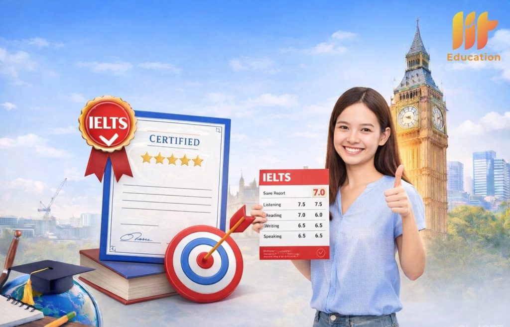 Tại LIT Education, phương pháp học IELTS được xây dựng theo hướng dễ hiểu – dễ thực hành – bám sát thực tế đề thi, giúp học viên từng bước cải thiện cả bốn kỹ năng Listening, Reading, Writing và Speaking.