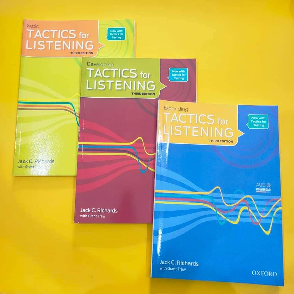 Tactics for Listening Basic của Jack C. Richards phù hợp band 1.0-3.0. Bộ sách có 24 bài học theo từng chủ đề quen thuộc. Mỗi bài có bài luyện phát âm, luyện nghe và các cuộc đối thoại đa dạng. File nghe bao gồm giọng nói tiếng Anh từ nhiều quốc gia: Anh, Mỹ, Úc. Điều này giúp học sinh quen với cách phát âm khác nhau. Bảng từ vựng cuối sách liệt kê chi tiết từng bài học.