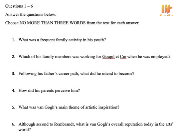 Trước tiên, hãy đọc cẩn thận câu hỏi và chú ý phần giới hạn số từ như “NO MORE THAN TWO WORDS” hoặc “NO MORE THAN THREE WORDS”. Đây là yếu tố quyết định đáp án đúng hay sai, dù bạn có tìm được thông tin chính xác trong bài đọc.