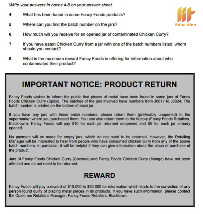 Bên cạnh đó, thông tin cần tìm thường xuất hiện theo thứ tự trong bài đọc, giúp bạn định hướng vị trí tìm đáp án dễ dàng hơn nếu đọc đúng cách. Việc nắm rõ các đặc điểm này sẽ giúp bạn làm bài chính xác hơn và hạn chế tối đa việc mất điểm không cần thiết.